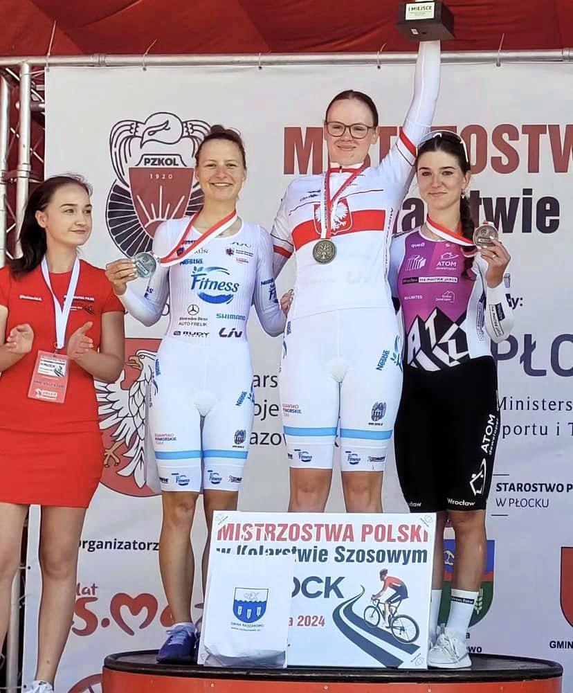Pod malowniczym Wzgórzem Tumskim w Płocku, przy brzegu Wisły ulokowano miasteczko Mistrzostw Polski i zarazem start oraz linię mety. Pierwszym wyścigiem ze startu wspólnego były zmagania juniorek, które mierzyły się z 70-kilometrową, pofałdowaną trasą na dystansie dwóch rund. Ze startu ruszyło ich 42. Zaledwie kilka minut po nim na czoło wysforowały się Kornelia Braun z KK Ziemia Darłowska, Paulina Lipieta z MLKS Wieluń, Zuzanna Marecka z ALKS STAL Grudziądz i Adrianna Byra z CZKKS Kolejarz-Jura Częstochowa. Po podjeździe rozpoczynającym drugie okrążenie, rywalkom oderwały się Kornelia Braun i Zuzanna Marecka. I to one na finiszu walczyły o miano mistrzyni Polski — lepsza okazała się Kornelia Braun, srebro zdobyła Zuzanna Marecka. Ponad 2 minuty później pojawił się peleton — z niego najszybciej finiszowała Milena Tarasewicz z ALKS STAL Grudziądz.