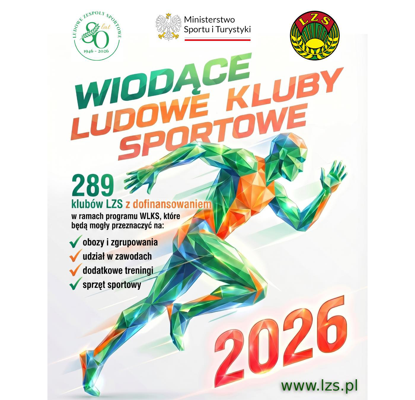 W 2026 roku władze Krajowego Zrzeszenia LZS biorąc pod uwagę odpowiedni poziom sportowy, wykazany ilością punktów zdobytych w ogólnopolskim współzawodnictwie dzieci i młodzieży oraz dobrą współpracę z sekcjami naborowymi i sprawne zarządzanie klubem, postanowiły udzielić wsparcia 289 klubom Zrzeszenia LZS. Środki finansowe można przeznaczyć na: zorganizowanie obozów i zgrupowań, uczestnictwo w imprezach sportowych, przeprowadzenie dodatkowych treningów, zakup niezbędnego sprzętu sportowego. WLKS powołano w sportach wiodących w Zrzeszeniu LZS, ale też w sportach niszowych, w których nasze kluby plasują się w czołówce najlepszych klubów w Polsce.
